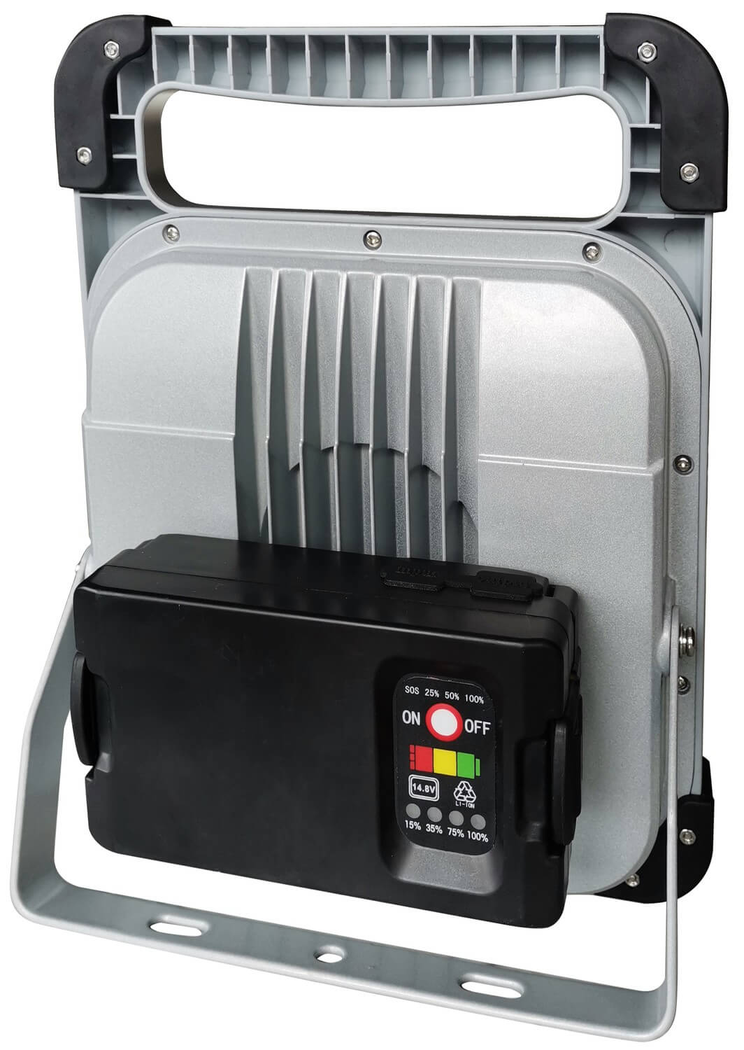 Ledino 30 W LED-Akkustrahler Veddel 30 mit Zusatzleuchte 3 W und Wechselakku, silber/ schwarz