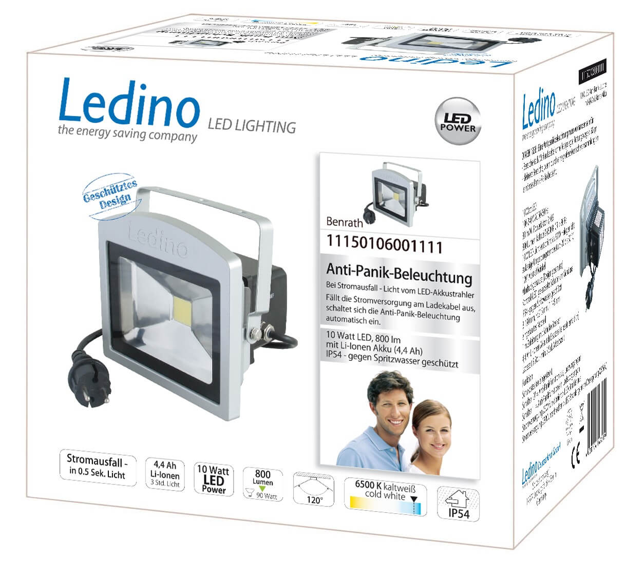 • Ledino LED-Anti-Panik-Strahler Fluter Benrath, 10W, 6500K, silber tageslichtweiss