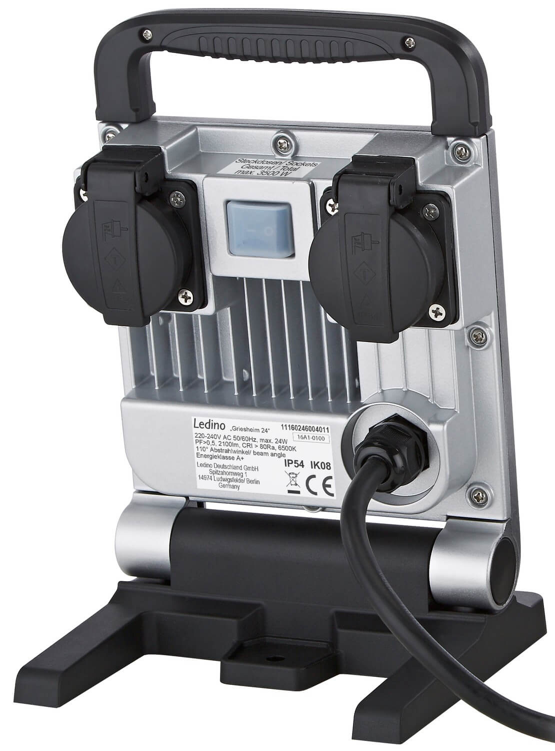 • Ledino LED-Arbeitsstrahler 24W mobiler Fluter, Bauleuchte Griesheim 24, 2100lm, 2 Steckdosen tageslichtweiss