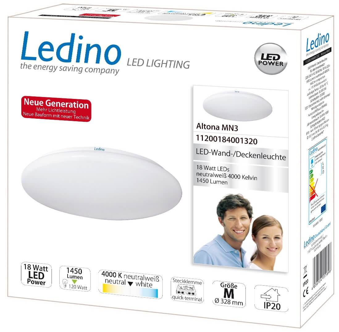 Ledino LED-Wand- /Deckenleuchten Altona MN3 18 W, mittel, weiß