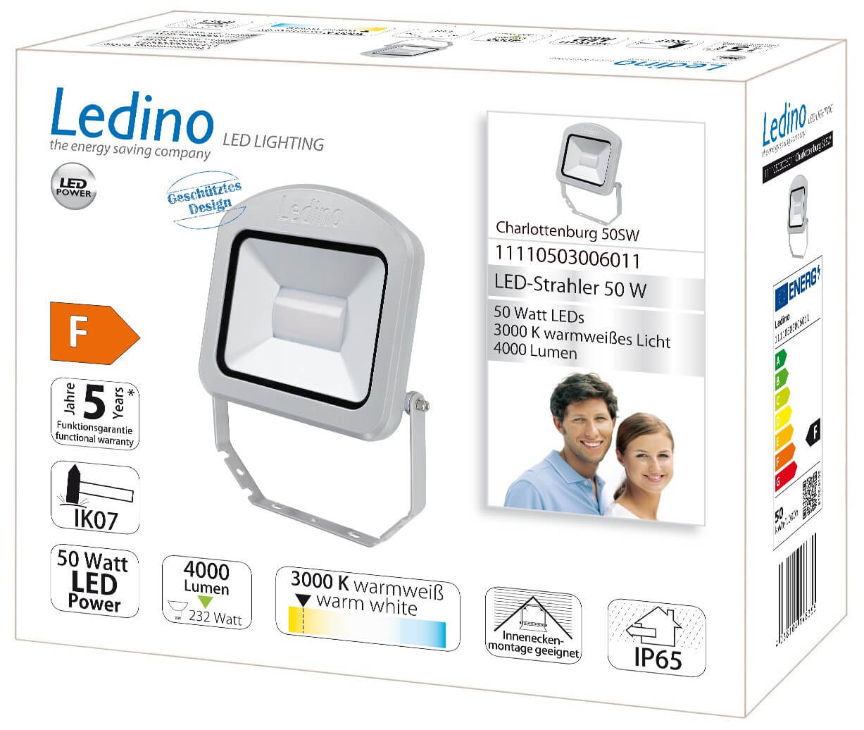 4000 Lumen, 50 kWh/1000, Energieklasse F, 94,1 lm/W